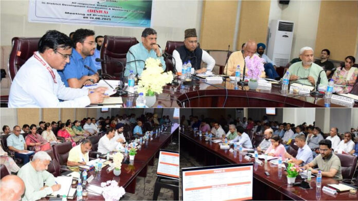 District Development Council Chairman Bharat Bhushan, all MLAs from Jammu district, Deputy Commissioner Sachin Kumar Vaishya and senior officers from across departments were also present. The meeting began with a comprehensive presentation by the Deputy Commissioner, who outlined the implementation status of major central government schemes, highlighting achievements while also identifying critical bottlenecks.