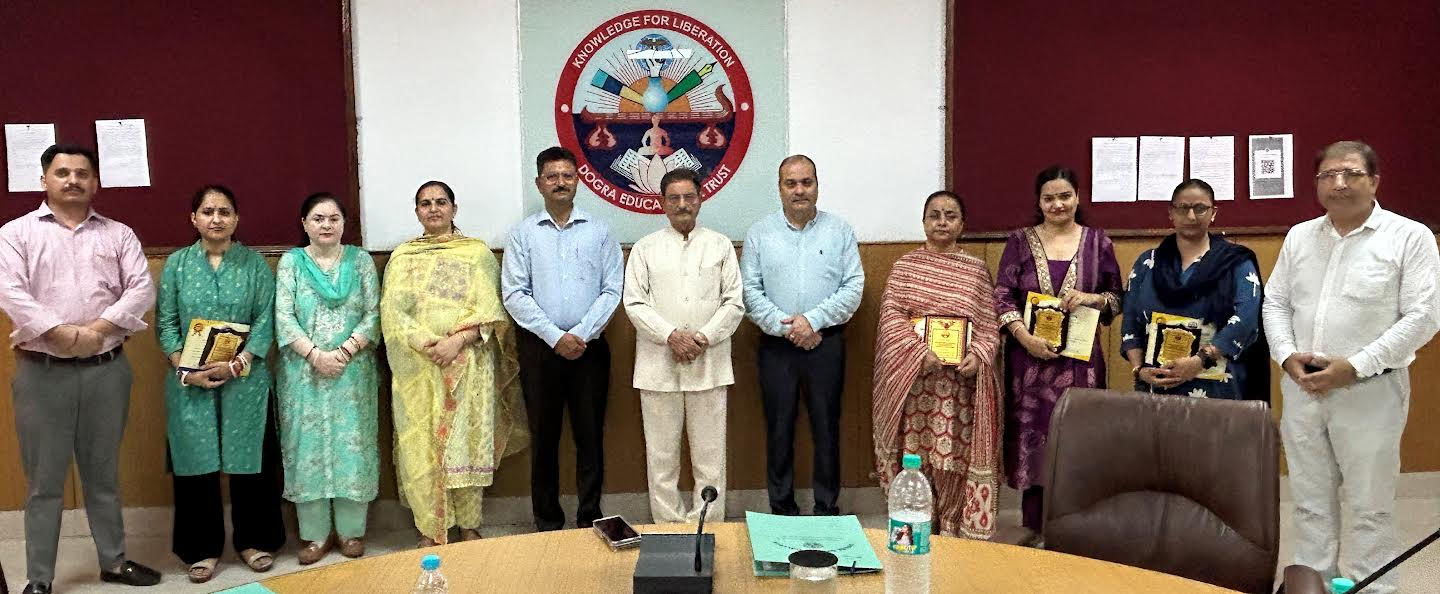 The day marked the formal conclusion of the FDP and was graced by the presence of distinguished dignitaries, Sh. Gulchain Singh Charak, Chairman, Dogra Educational Trust, Dr. Samar Dev Singh Charak, Secretary, Dogra Educational Trust, Dr. Bela Thakur, Director, Dogra Educational Trust and Principal, Dogra Degree College, Dr. Dharamveer Sharma, Dean, Dogra Group of Colleges, Dr. Gitika Sehgal, Coordinator, Dogra Educational Trust.