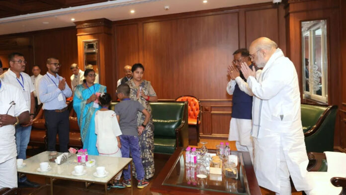 Union Home Minister and Minister of Cooperation Amit Shah, on the second day of his Chhattisgarh visit, met the family of Additional Superintendent of Police Akash Rao Giripunje on Monday in Nava Raipur.