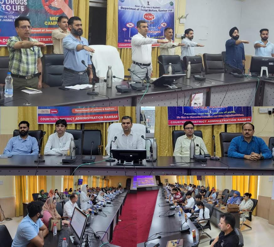 The District Administration Ramban, in collaboration with the Social Welfare Department and other line departments organized a comprehensive awareness programme in the Conference Hall, Maitra to mark the International Day Against Drug Abuse and Illicit Trafficking. The programme aimed to raise awareness about the ill effects of substance abuse and promote a drug-free society.