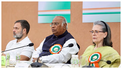 Top party leaders, including Congress president Mallikarjun Kharge, Leader of Opposition in the Lok Sabha Rahul Gandhi, Deputy Leader in the Rajya Sabha Pramod Tiwari and others, such as Jairam Ramesh, K Suresh and Manickam Tagore, participated in the meeting.