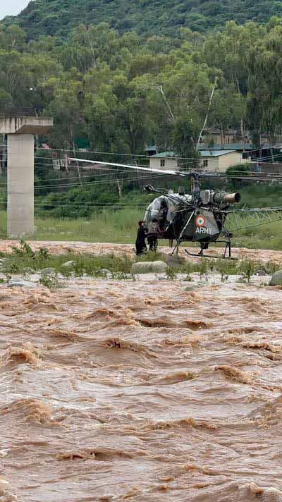 The situation quickly escalated into a life-threatening emergency as the young boy clung to hope on a narrow patch of land, completely surrounded by the raging river. With no access routes due to the overflowing water and dangerous terrain, local authorities called upon the Indian Army for urgent help. Responding without hesitation, Army Aviation pilots from the White Knight Corps launched a daring rescue mission under extremely adverse weather conditions. Battling poor visibility, incessant rainfall, and treacherous winds, the pilots took off without delay, aware that every minute counted in saving the boy’s life.
