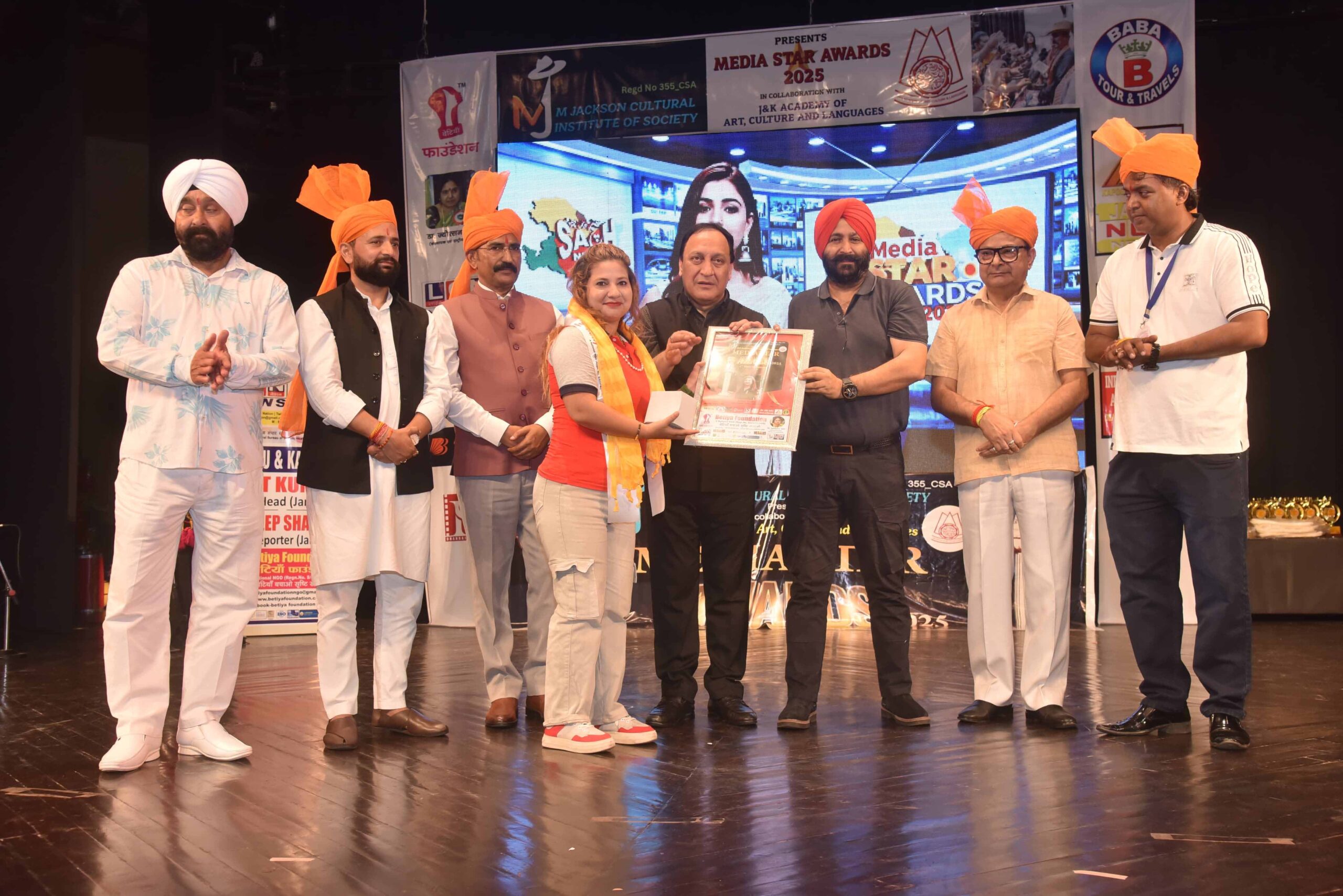 The M Jackson Cultural Institute of Society, in collaboration with the Jammu and Kashmir Academy of Art, Culture, and Languages, proudly presented the Media Star Awards 2025 today at Abhinav Theatre, Jammu, celebrating outstanding contributions and excellence in the field of journalism.