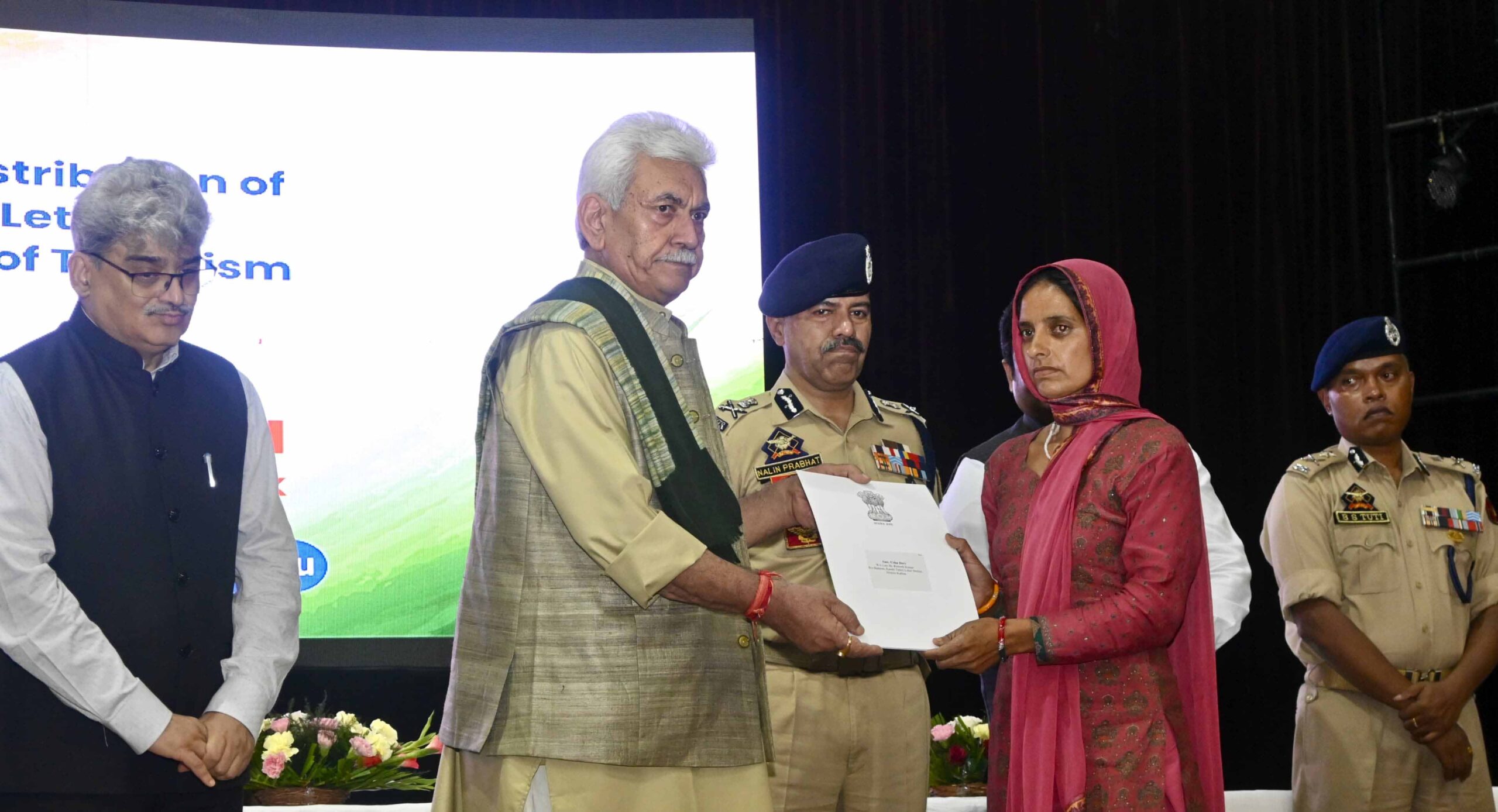 Lieutenant Governor Manoj Sinha today handed over the appointment letters to 80 Next of Kins (NoKs) of terror victims, at Jammu.