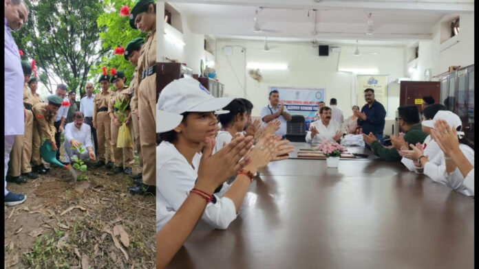 During the visit, Arvind Gupta addressed enthusiastic students from NCC and NSS units, emphasizing the importance of discipline, patriotism, and environmental consciousness.