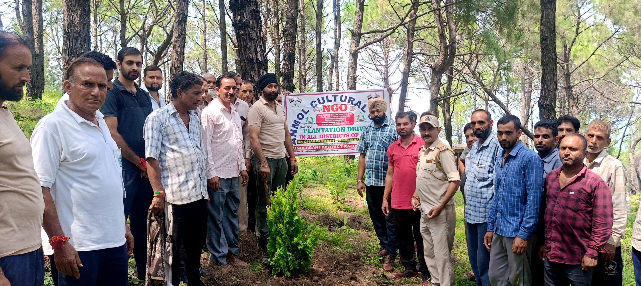 Today a plantation drive was organised plantation drive under Nagar Van Charnote scheme in compartment number 127/D at Baba Nar Singh Nagar Charnot panchayat Bhajwal tehsil Sunderbani district Rajouri. The plantation drive was organised in collaboration with the team of J&K,s famous NGO Anmol Cultural Club Sunderbani, along with prominent citizens, ex members of Panchyati raj institutions, and all staff of Sunderbani range participated with full patriotic fervour and planted saplings different medicinal , ornamental, fruit and fodder plants. Plants were also distributed among the participants to develop a sense of responsibility of greener future among them.