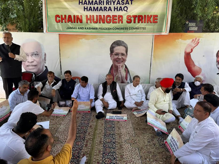 Several senior leaders addressed the gathering and pressed for statehood at the earliest otherwise struggle shall be intensified. Those who addressed and observed hunger strike include Shah Nawaz Chaudhary, Balwan Singh, Ravinder Sharma,Yogesh Sawhney, Th Balbir Singh, G M Saroori, Ved Mahajan, Yash Pal Kundal, Iftikhar Ahmed MLA, Indu Pawar, Rajnish Sharma, Naresh Gupta, Sain Rasheed ,Kanta Bhan,T S Tony, DCC Presidents,Th Manmohan Singh ( Urban), Hari Singh Chib ( Rural), Asif Naqeeb ( Kishtwar), Vinod Khajuria (Udhampur), SHEIKH Mujeeb (Doda), Bhupender Singh ( Reasi), Parvez Wani( Ramban), Sanjeev sharma, Samba, Frontal wings, Ajaz Chaudhary (IYC), Vijay Sharma( Seva Dal,Zahida Khan retd DC, Ajay Lakhotra NSUI, Rajesh Sadhotra, Pawan Raina, Shashi Sharma, Shakeel Shah, Dina Nath Bhagat, Namrata Sharma, Amrit Bali, Parveen Akhtar, Parveen shah, Vimla Slathia, Anuradha Sharma,Babal Gupta,Vimla Slathia, Jatin Raina, Bharat Priye, Gajan Singh, Rajinder Singh Nathu, Dwarka Choudhary, Ashok Bhagat, Sanjeev Panda, Rajvir Singh, Kapil singh, Vijay Shashtri, Bhavishya Sudan, latish sharma, Jatinder Bhagat, Sonu Dogra, Neeraj Gupta,