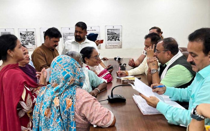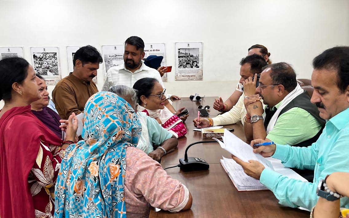 Senior BJP leader and MLA from Bahu Assembly Constituency, Ch. Vikram Randhawa held a public grievances camp at the BJP Headquarters, Trikuta Nagar, Jammu. Various deputations and individuals belonged to areas including South Extension Trikuta Nagar, Gandhi Nagar, Gangyal, Nanak Nagar, Sector -9 Ext Trikuta Nagar, Trikuta Nagar, Kalika Colony, Sector-5 By Pass Colony, Chattha Farm, Rehari Colony, Sanjay Nagar, Lakhmi Puram, Deep Nagar, Dashmesh Nagar, Ext Nanak Nagar, Ekta Vihar and other adjoining areas. Deputations presented various issues related to repair and restoration of damaged roads, garbage in lanes due to rains, construction of lanes and drains, requirement of street lights, transfer of shop in JDA department, reassessment of VAT and ST60, allotment of land, revenue matter, orld age pension, revocation of suspension order, construction of protection wall, bush clearance in lanes, leakages in PHE pipes, clearance of drains, construction of lanes and drains, out of order transformer, and other issues. Randhawa gave patient hearing to the grievances and promptly took up several matters with concerned officials. In many cases, he issued written directions on the spot to ensure that the issues raised by the public receive timely attention. Speaking on the occasion, Randhawa stressed that the BJP’s public representatives are always eager to address the day-to-day issues faced by the common people. It is our firm belief that good governance means being accessible and responsive to public concerns. Such grievance camps provide a direct channel for the people to reach us and get their matters resolved without delay, he said.