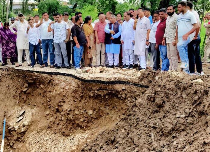 During the tour, the delegation visited several worst-hit villages including Paloora, Sarthia, Chachwal, Chilaria, Sanoora, and Sujana, where the heavy downpour and gushing waters have caused widespread damage. The leaders also reviewed the alarming situation that has arisen due to the collapse of the bridge on the Sartiyan Road, which has badly affected connectivity and hampered movement of the local population. Speaking on the occasion, Sat Sharma He emphasized that the BJP, true to its ideology of serving the nation and its people, has always been at the forefront in responding to natural calamities.