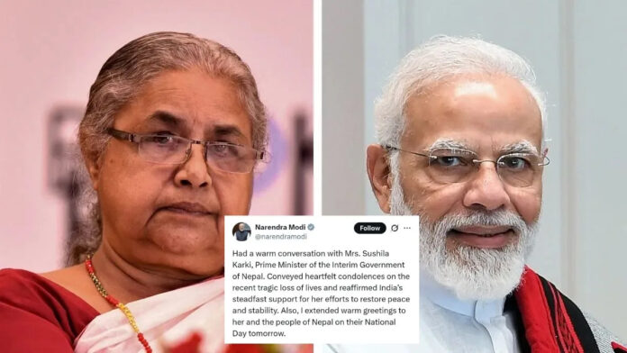 Prime Minister Narendra Modi on Thursday expressed India’s strong support for Nepal’s new interim Prime Minister, Sushila Karki, as she works to restore peace and stability in the country following violent protests earlier this month.