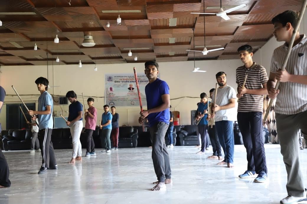 Out of 140 registrations, 80 students were shortlisted and trained in two batches of forty each. The sessions covered the basics of Silambam, including footwork, postures, and stick-handling techniques, blending elements of discipline, focus, and physical fitness.