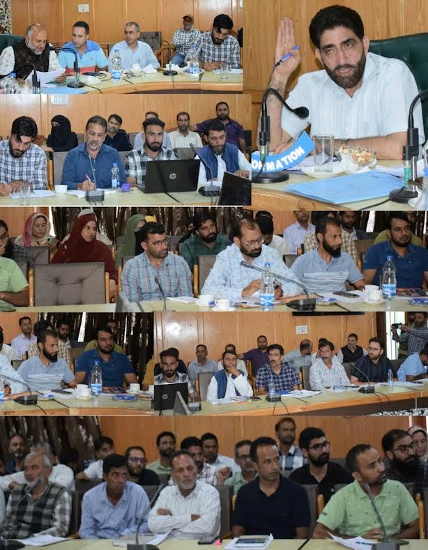 Member of Legislative Assembly (MLA) Rajpora, Ghulam Mohi Uddin Mir today convened a meeting at Circuit House Pulwama to review the developmental works of the Rural Development Department (RDD) for blocks Shadimarg, Achgoze, and Litter. During the meeting, Block Development Officer of Shadimarg, Achgoze, and Litter delivered a detailed presentation highlighting the achievements, ongoing works, and future action plans under various flagship schemes of the department. The presentations covered progress under MGNREGA, PMAY-G, PRI, SBM-G (Swachh Bharat Mission Gramin), Amrit Sarovar, and other developmental initiatives aimed at strengthening rural infrastructure and improving livelihoods.