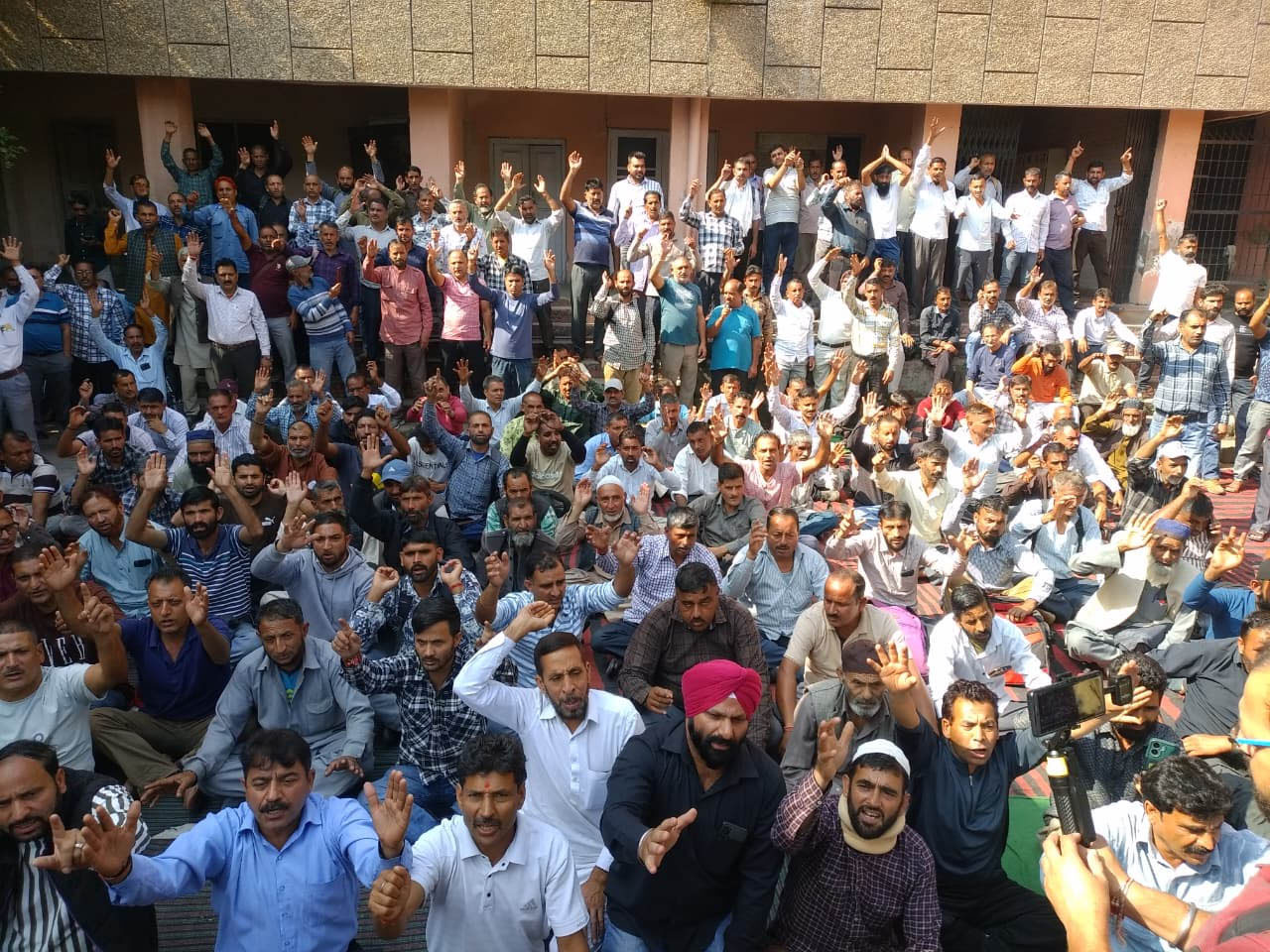 Amid slogans of “We want justice”, the workers held a dharna demonstration at the Jal Shakti office in the city on the first day of the autumn session of the Jammu and Kashmir Assembly.