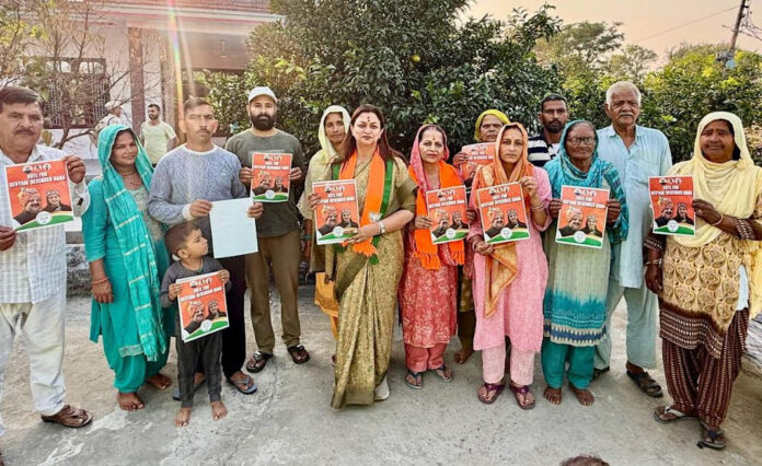 Rekha Mahajan was accompanied by Shakti Kendra Parmukh Kuldeep Singh, Panch Champa Rani, Booth President Kuldeep Jamwal, and Booth President and Panch Arun Singh during the campaign.