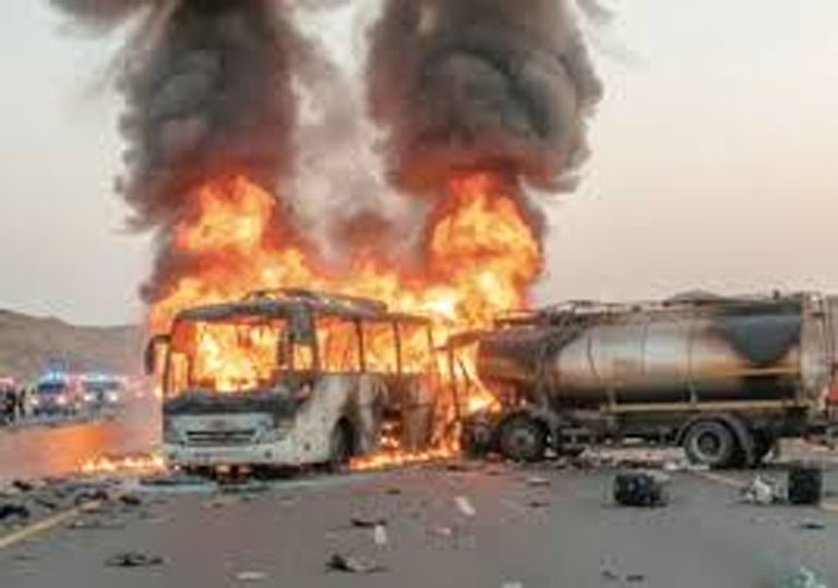 According to the official, 46 people were travelling in the ill-fated bus, which collided with the oil tanker about 25 km from Madina.