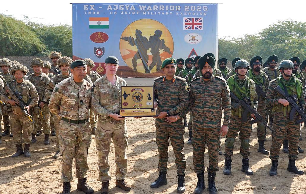 The India-United Kingdom Joint Military Exercise ‘AJEYA WARRIOR-25’ successfully concluded today at the Mahajan Field Firing Ranges in Rajasthan, marking the end of a two-week-long intensive bilateral military engagement. This eighth edition of the exercise brought together 240 soldiers from both nations, showcasing a deep commitment to enhancing defence cooperation, interoperability and mutual understanding between the two professional armies.