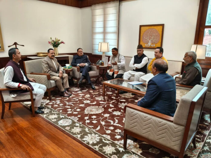 The delegation comprised Union MoS (PMO) Dr Jitendra Singh, J&K BJP President & MP (Rajya Sabha) Shri Sat Sharma, Leader of Opposition Shri Sunil Sharma, MPs Shri Jugal Kishore Sharma and Shri Ghulam Ali Khatana, and MLAs Dr. Devinder Manyal, Shri Sham Lal Sharma and Shri R. S. Pathania.